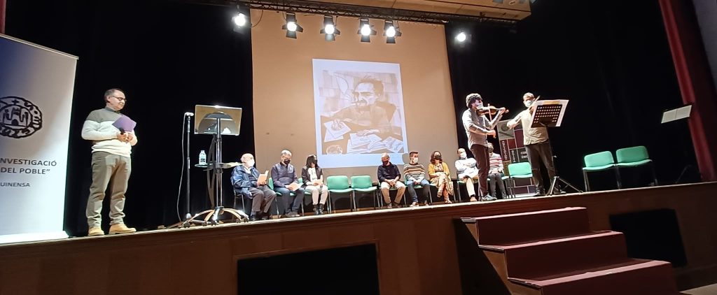 El acto incorporó una grata sorpresa, el homenaje al activo creador, activista cultural, estudioso, escritor y sobre todo poeta Hèctor Moret, con la lectura de alguno de sus poemas y la participación del duo de violines formado por Àlex Prats y Juan Zalba.